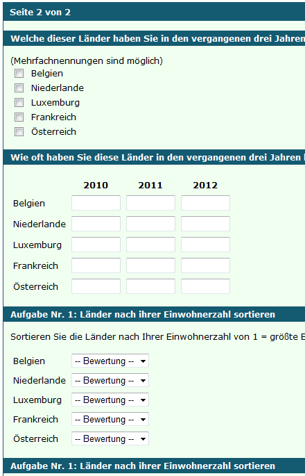 Matrix-Fragen mit Kombination aus Eingabefeldern und Dropdown-Listen ...