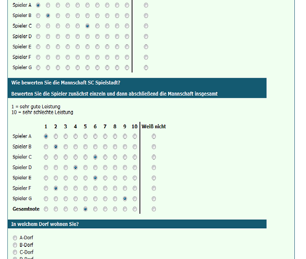 Matrix-Fragen mit Kombination aus Eingabefeldern und Dropdown-Listen ...