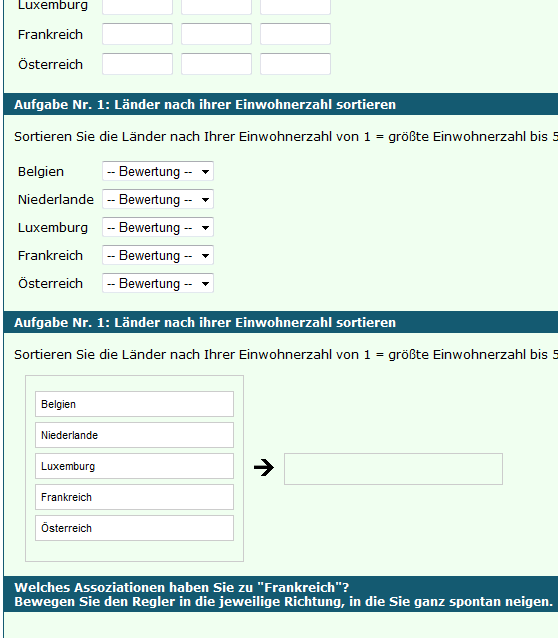 Teilnehmer die Bewohnerzahlen der Länder richtig sortiert, die absoluten Werte aber gar nicht kennt, oder sogar völlig falsch einschätzt. Das ist auch bei der Messung von Einstellungen bedeutsam. Wenn die